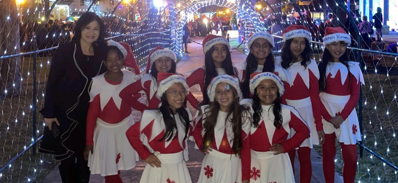 Superintendent Anita Chu and the Woodcraft Rangers Dance Club at the San Gabriel Tree Lighting